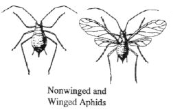 of aphid which may feed on it. These pear-shaped, soft-bodied insects with