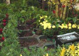 most of the flowers are hand-watered the trees and back plants are part of