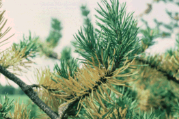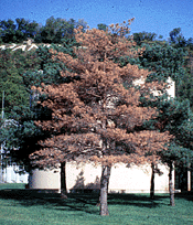 How do we tell if the tree will survive? First check to see if the branch with the browning needles is alive. Scrape off a small area of the "bark" of the branch with a sharp knife. There should be green tissue immediately under the bark. This green cambium layer is quite thin with the underlying woody tissue being white. If there is no green at all, the branch is dead. Also check the ends of branches. Dry, brittle twigs are a sure sign that at least that part of the tree is dead. Dead branches should be removed. Major branch removal may destroy the aesthetics of the tree resulting in tree removal as the only viable option. What can we do to reduce stress? Concentrate on good watering. During dry weather (including winter), water the trees to a depth of at least 10 inches with deeper watering preferred. You can check the depth the water reaches by pushing a long-tanged screwdriver, metal rod or wooden dowel into the soil. It will stop when it reaches dry soil. During hot, dry weather, trees may need watered once a week. If we have an open, dry winter, water the trees once per month when the temperatures are above freezing.